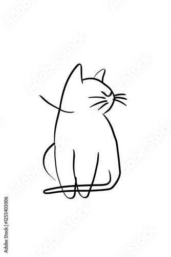 © erika8213, Naklejka premium Single line drawing of a cute cat, on white bakcground.