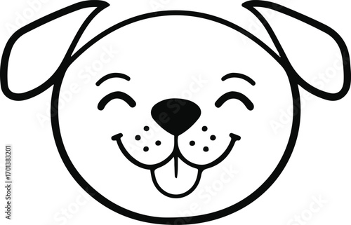 Fototapeta premium single line drawing of dog face, simple black outline, white background, friendly style.e