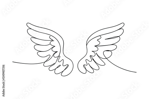 Obraz premium Single Line Drawing of Elegant Angelic Wings Illustration