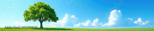 © Latsamee, Obraz premium Single majestic tree against a clear blue sky, tree, heavens