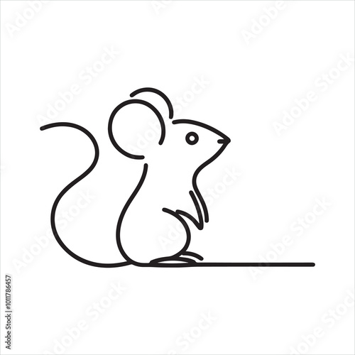 © Arafat, Obraz premium single one line Mouse silhouette on white background