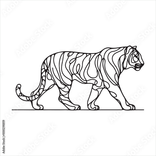 © Arafat, Naklejka premium single one line Tiger silhouette on white background