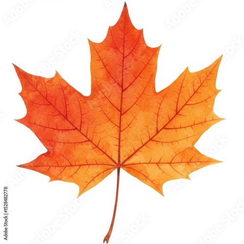 Obraz premium Single Orange and Red Maple Leaf on White Background