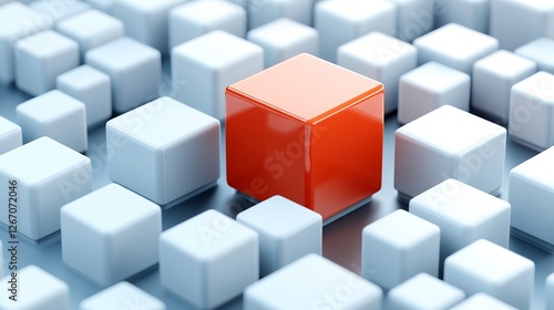 Obraz premium Single Orange Cube Stands Out Among White Cubes. AI Generated