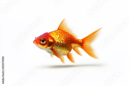 © BerkahStock, Obraz premium Single orange goldfish isolated on white background.