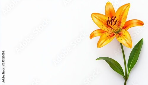 © SaLLy Studio AI, Fototapeta premium Single Orange Lily on White Background