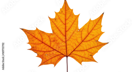 © Mustika, Obraz premium Single orange maple leaf autumn foliage 27.