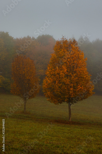 Fototapeta premium single orange tree on a misty day