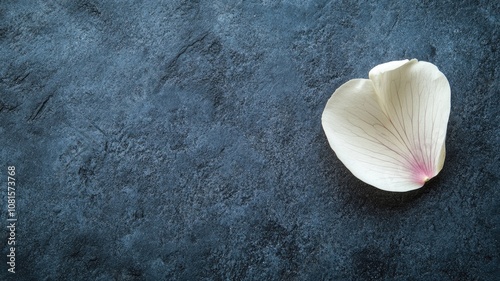 Fototapeta premium Single pale flower petal on textured dark background