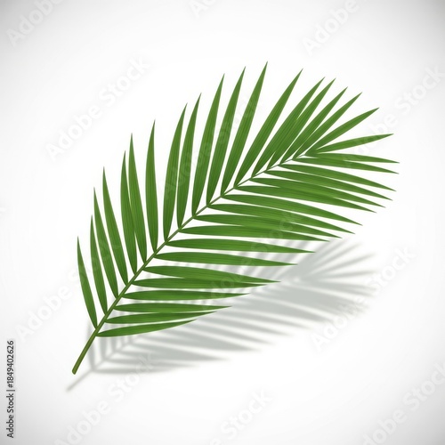 Obraz premium Single Palm Frond Leaf with Shadow on White Background.