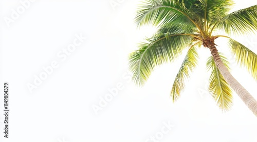 © ANZ studio, Fototapeta premium Single palm tree against bright white sky.