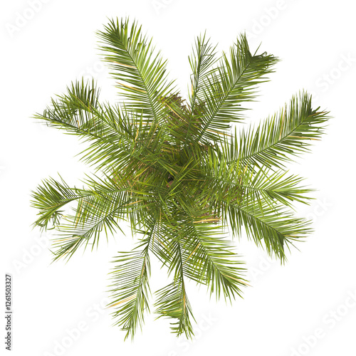 © rodrigo, Naklejka premium Single palm Tree isolated on transparent background. Arecaceae palm tree with green leaves on white background. Syagrus botryophora. Isolated palm tree PNG on transparent background. palm tree leaves.