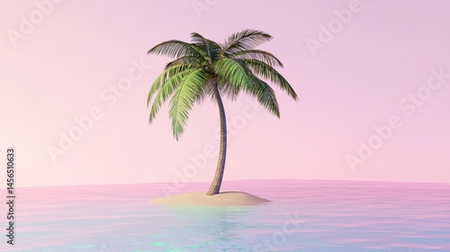 Naklejka premium Single Palm Tree on a Pink Pastel Island