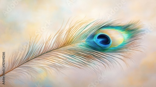 Obraz premium Single peacock feather with eye isolated on soft background