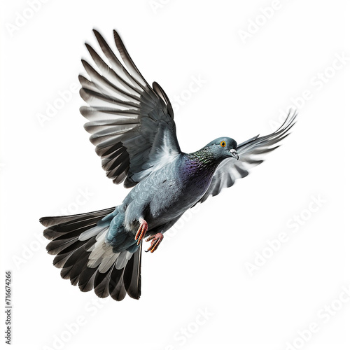 © Nayan, Naklejka premium Single pigeon flying isolated on a white background