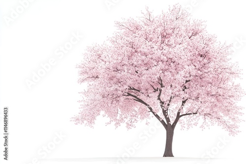 © kucret, Fototapeta premium Single pink cherry blossom tree isolated on white background.