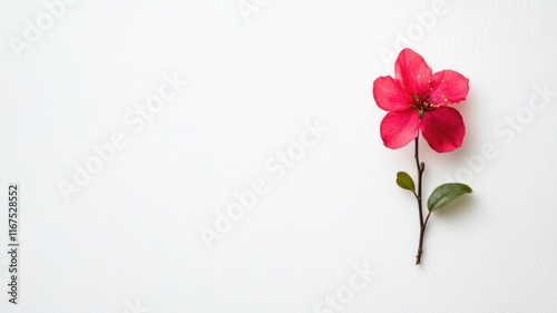© Katty, Naklejka premium Single pink flower with green leaves on white background
