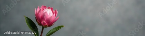 © Busban, Fototapeta premium Single pink king protea, elegant grey backdrop, light grey, nature