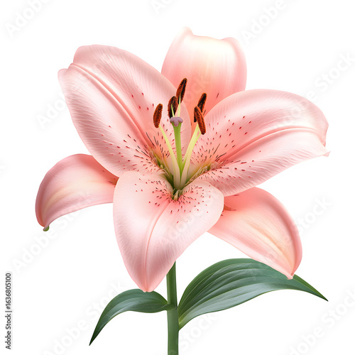Naklejka premium Single pink lily symbolizing beauty and strength, isolated on white...