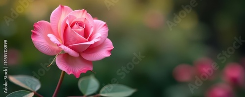 Obraz premium Single pink rose, long stem, soft petals, garden bloom , nature, long stem