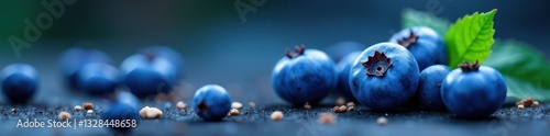 © Birdkab, Obraz premium Single plump blueberry, vibrant blue hue, delicate bloom, clean eating, blue