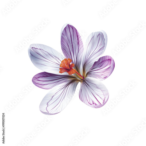 © CgDesign4U, Naklejka premium Single Purple and White Crocus Flower on White Background