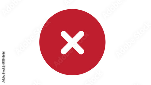 © Tajul Islam, Fototapeta premium Single red cross symbol in a circle on a white background, signifying rejection, error, or incorrect answer.