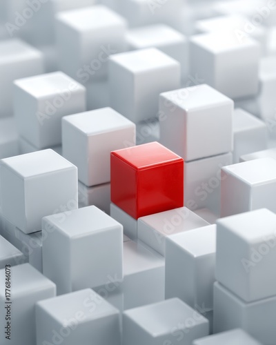 Obraz premium Single red cube among white cubes, representing individuality, courage, and...