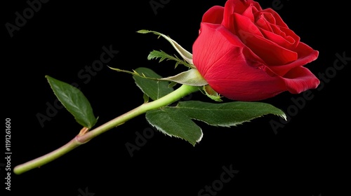 Fototapeta premium Single Red Rose Against Black Background