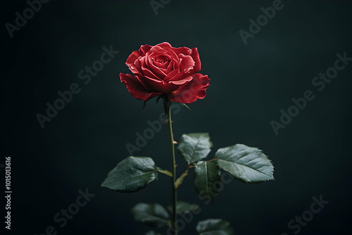 Naklejka premium Single Red Rose on Dark Background - Photo