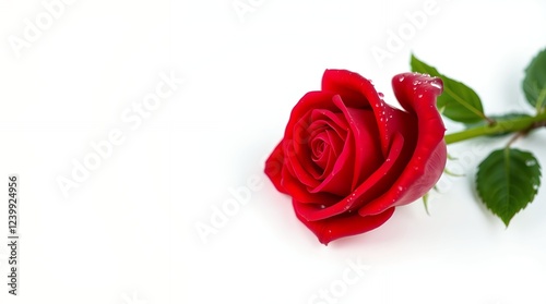 © Donjuan Visual, Fototapeta premium Single Red Rose with Dew Drops on White Background