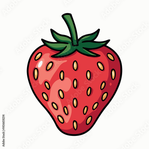 © vector, Fototapeta premium Single red strawberry illustration clipart graphic design food ripe fruit sweet juicy fresh