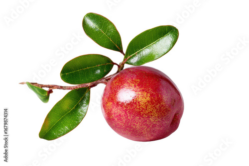 Fototapeta premium Single Red Tropical Fruit with Leaves on Transparent Background