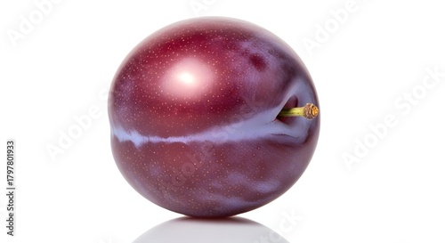 © Sajib, Fototapeta premium Single ripe plum with a stem, isolated on white background