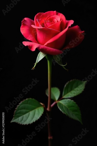 © The Art of AI, Naklejka premium Single rose bud on a black background with veins, vein, intricate, nature