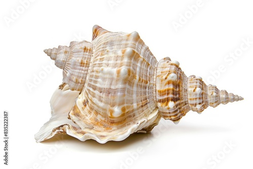 Fototapeta premium Single seashell with intricate patterns isolated on white background
