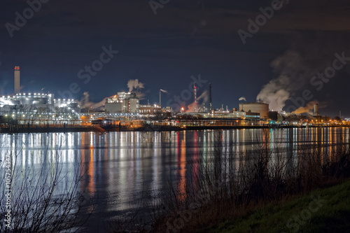 © David Hajnal, Fototapeta premium Single-Shot HDR of an industry landscape of Ludwigshafen as seen from Mannheim at the opposite side of the river Rhine in Germany.