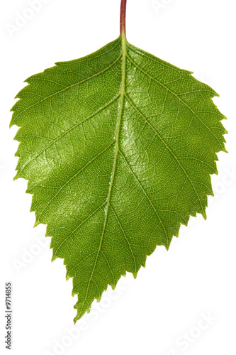 © robynmac, Naklejka premium Single silver birch tree leaf, isolated on white.