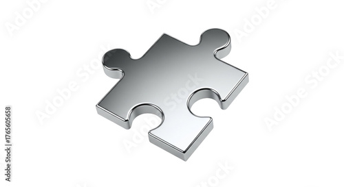 © Pixel PNG, Fototapeta premium Single Silver Metallic Puzzle Piece, Isolated on White