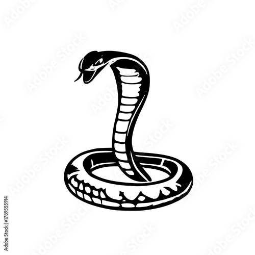 Fototapeta premium Single Solid Black Cobra Icon: Stylized Cobra in a