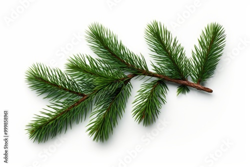 Naklejka premium Single spruce branch with needles and cones beautifully displayed on a white background