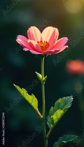 Fototapeta premium Single stem of a flower with a few leaves and soft light, illuminate, nature