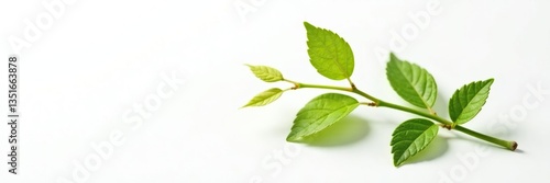 © Withun, Obraz premium Single stem with leaves isolated on white background, leaf, floral, foliage