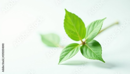 © PHOUVONG , Fototapeta premium Single stem with leaves isolated on white background, plant, closeup