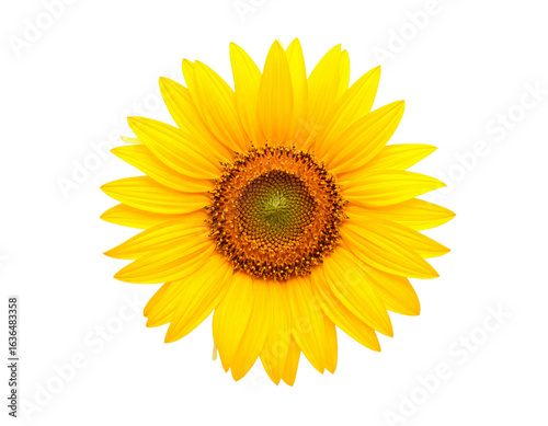 © Hazara, Fototapeta premium Single Sunflower Facing Forward with Slight Shadow, Isolated on White Background