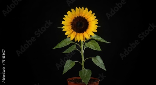 © andi, Obraz premium Single sunflower in pot against black (1)