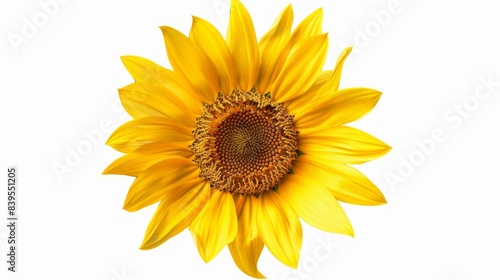 © PLATİNUM, Fototapeta premium Single Sunflower With Green Leaves Copyspace Against a White Background