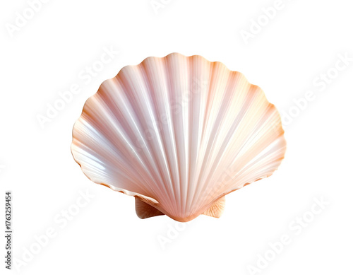 © Dwi, Fototapeta premium Single, textured, white-and-pink seashell against a black background