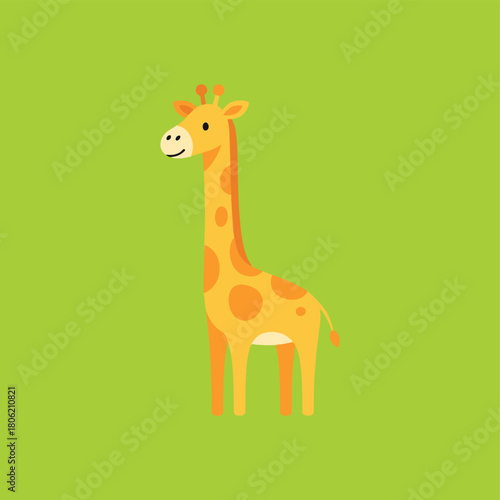 © Faridzdesign, Naklejka premium Single tone flat vector cartoon giraffe, minimal and cute, no stroke