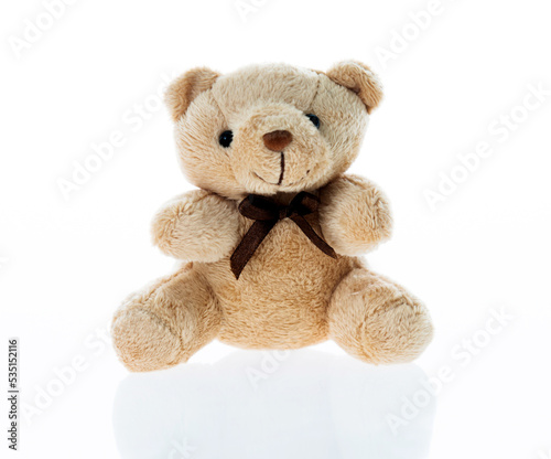 © xy, Obraz premium Single toy teddy bear isolated on white background